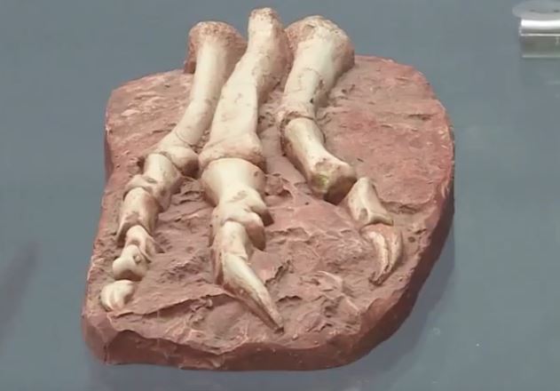 И речь не только про гигантские размеры. Вот - маленький археоптерикс. Копия скелета с отпечатками перьев на камне. А это нелетающий гасторнис. Останки обнаружены в Северной Америке.
