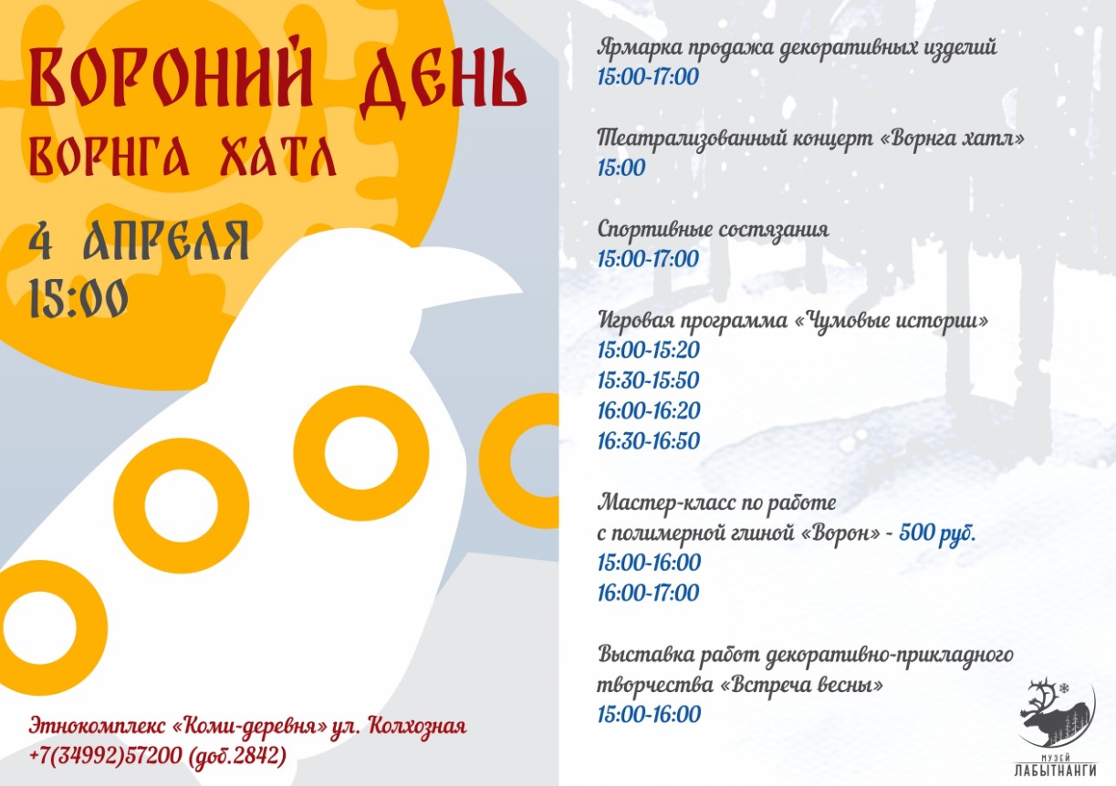 В предстоящую пятницу, 4 апреля, этнокомплекс «Коми-деревня» станет местом проведения яркого национального праздника «Ворнга хатл», что в переводе означает «Вороний день».