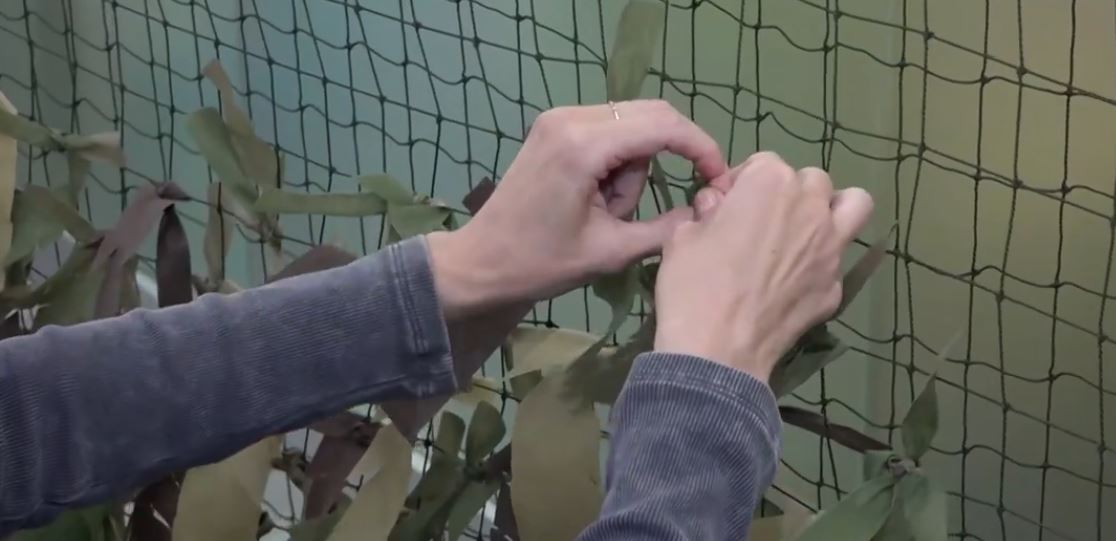 В добровольческом штабе в основном серебряные волонтёры. Плетут маскировочные сети, а заодно пишут на лоскутах молитвы, поднимают солдатам боевой дух. Творят и самые маленькие ноябряне — дети защитников Родины. На этот раз учатся делать значки. Мастер-класс преподает такой же подросток.