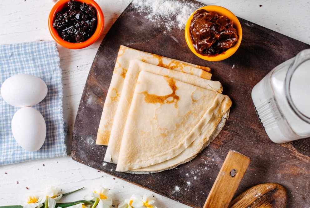 Дома устраивают поминальный обед. Обычно готовят кутью – кашу из пшеницы с медом и сухофруктами, блины, крашеные яйца, хлеб. Кутья символизирует вечную жизнь и воскресение, блины – солнце и обновление, яйца – новую жизнь.