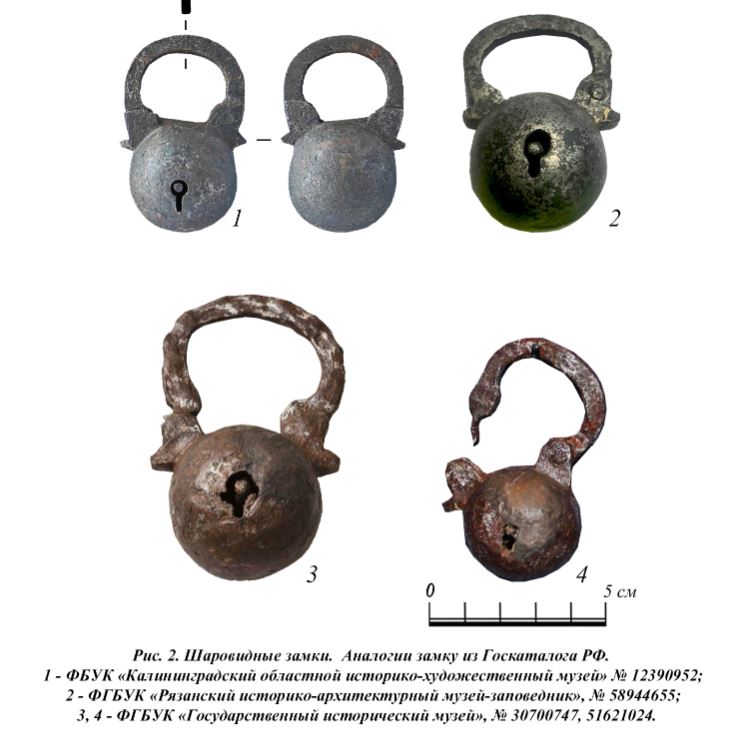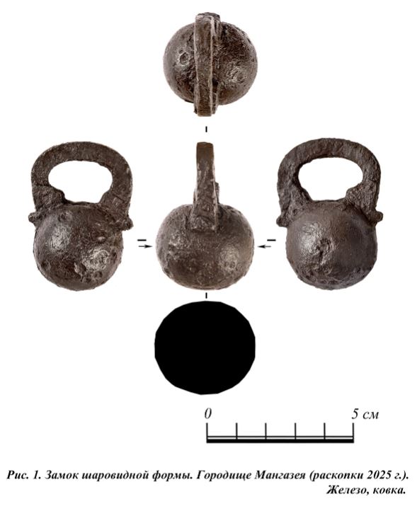 Замок обнаружили в 2025 году во время раскопок на месте часовни Василия Мангазейского. Размер его небольшой – всего около 5-6 сантиметров. По форме напоминает шар с дужкой.
